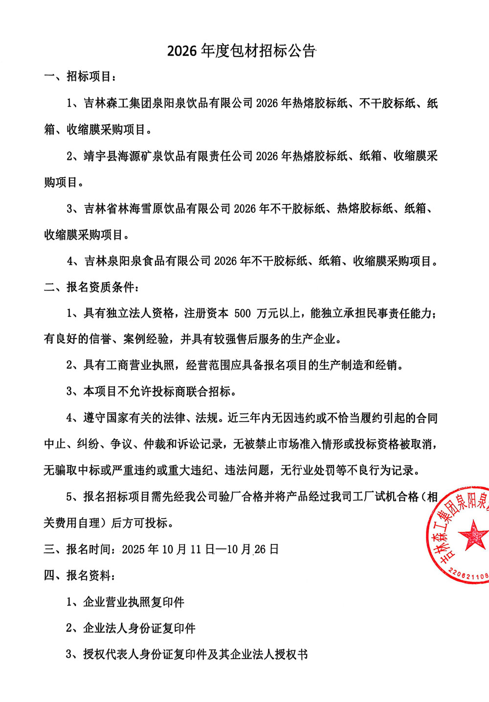 包材招標(biāo)公告